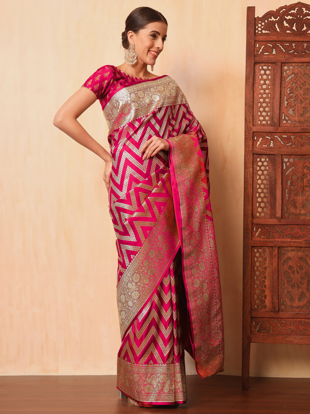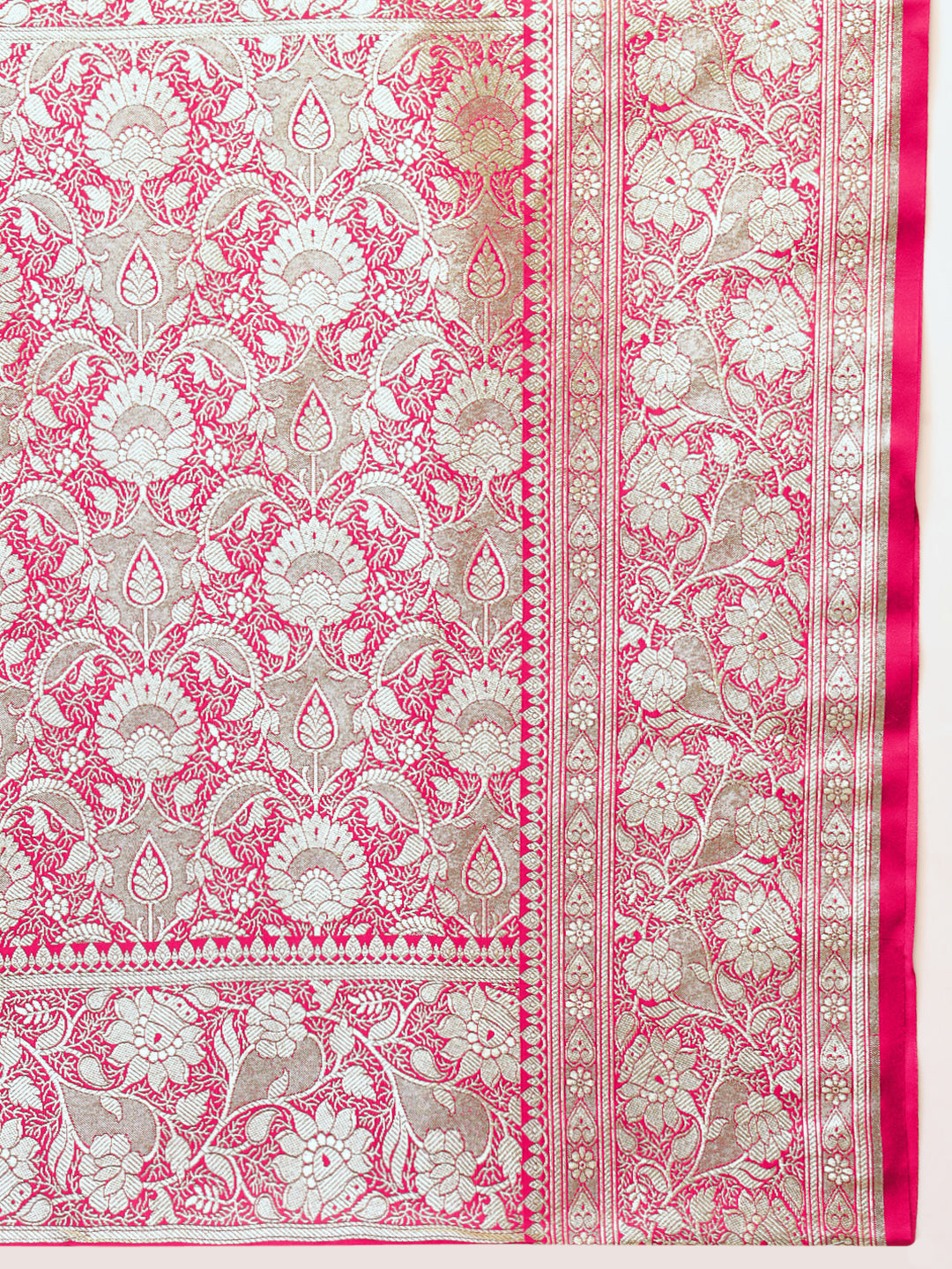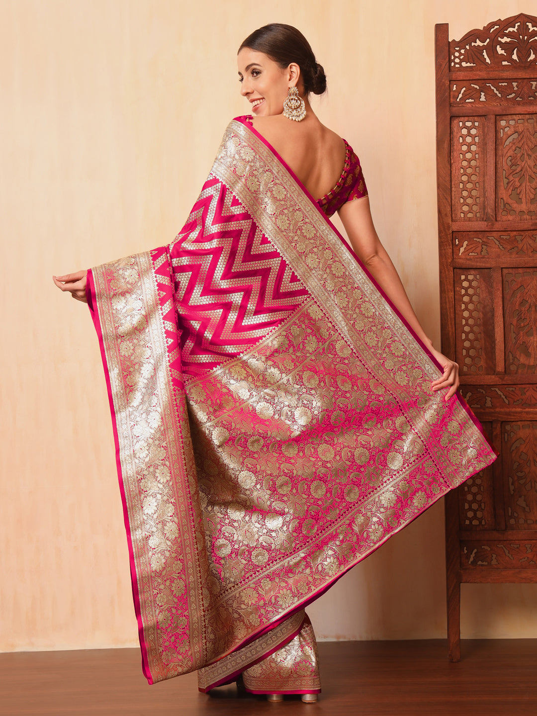Rani Pink Kanjeevaram Banarasi Silk Handwoven Saree