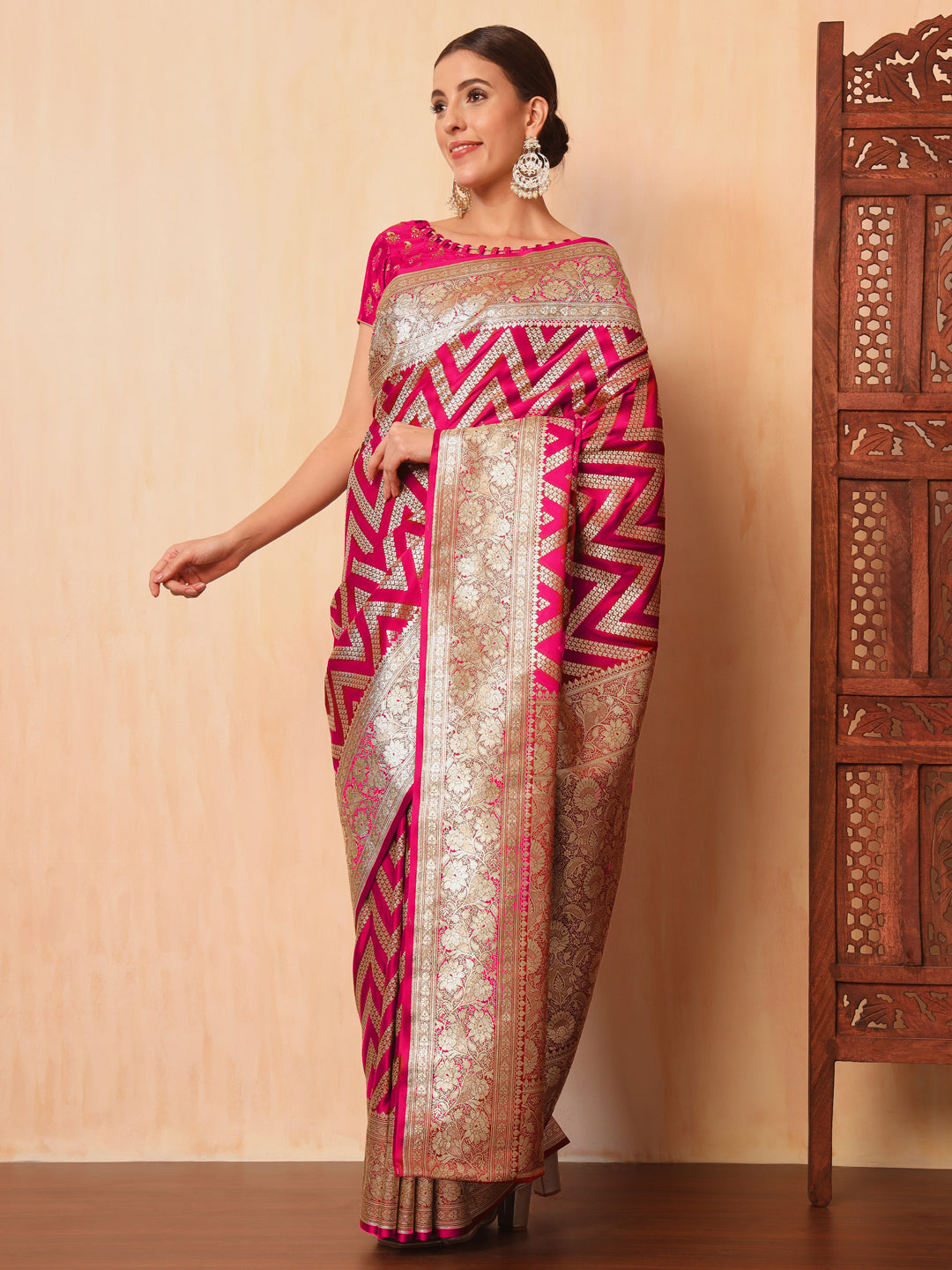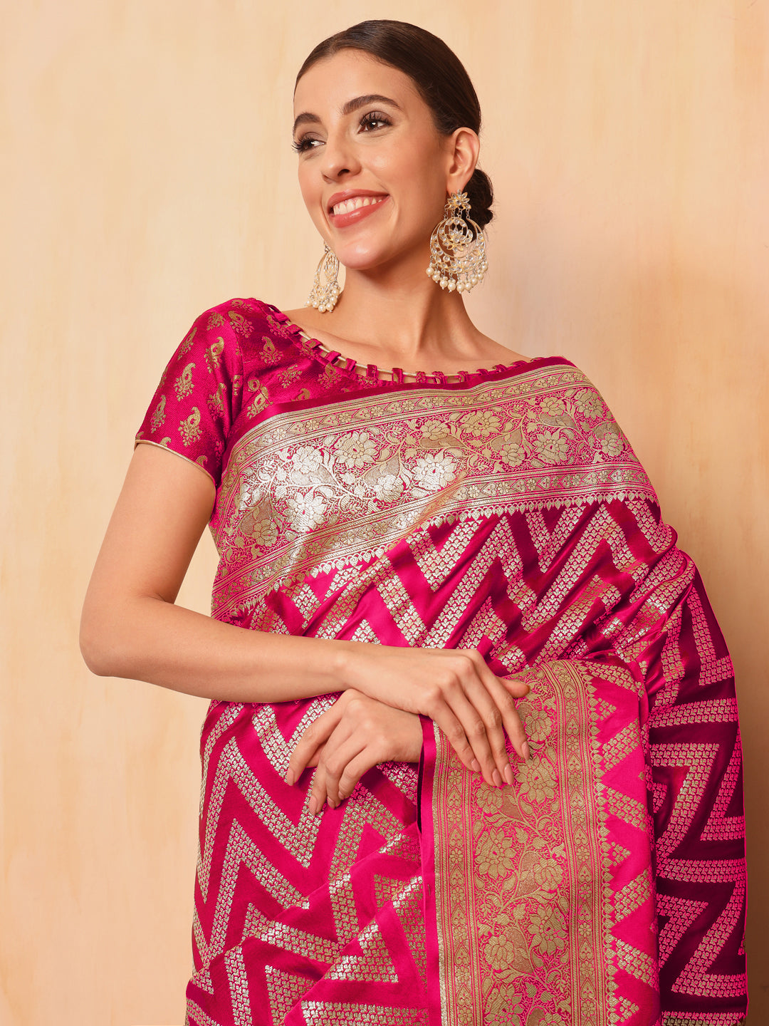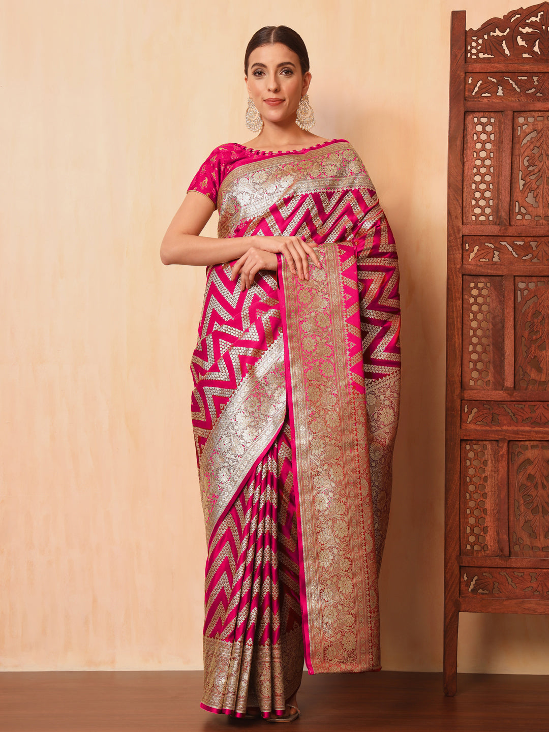Rani Pink Kanjeevaram Banarasi Silk Handwoven Saree