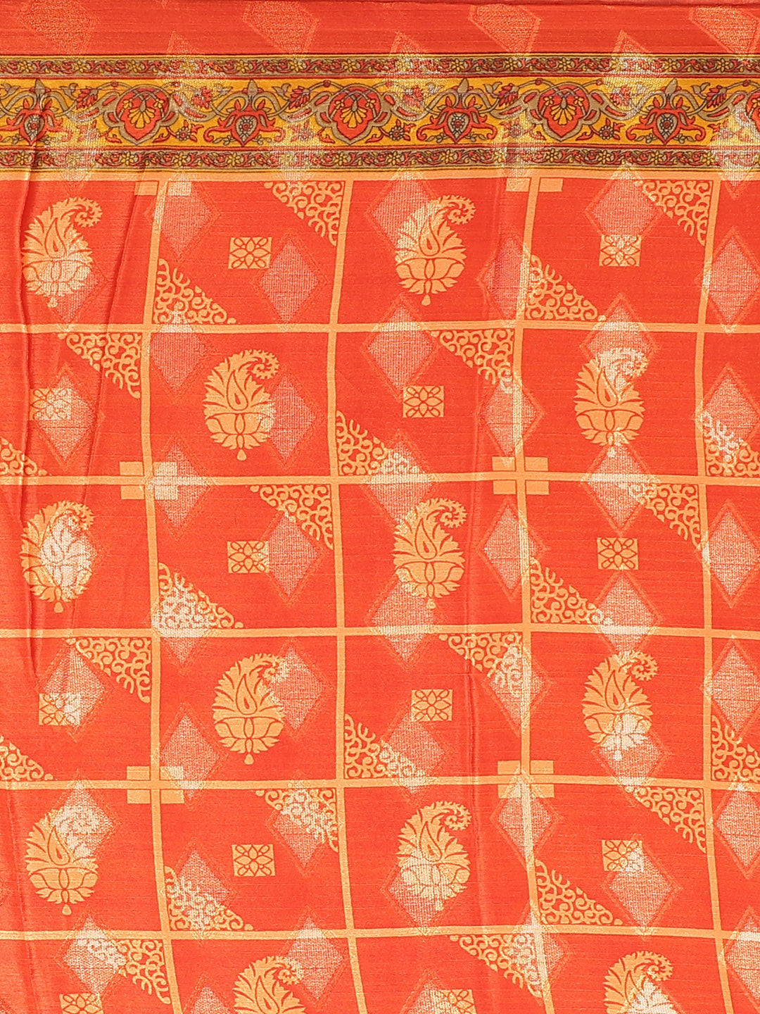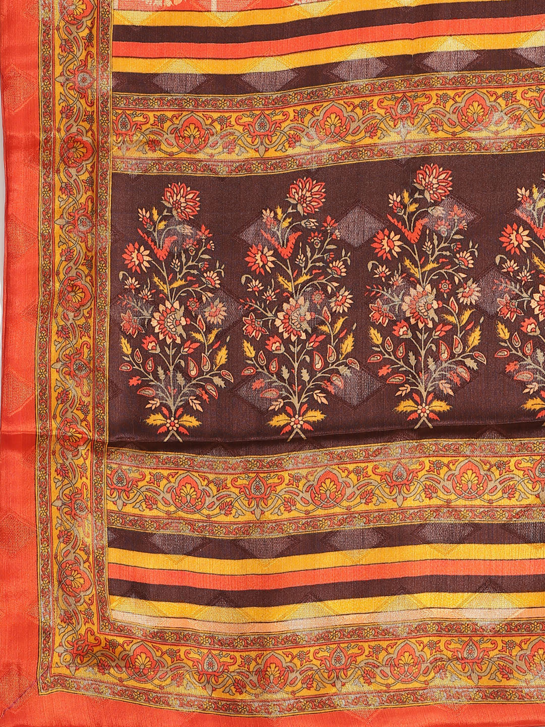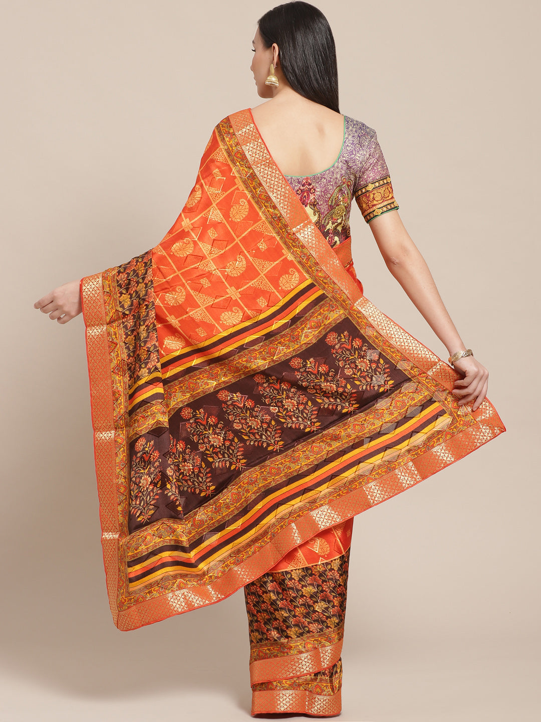 Self Geometrical Jacquard Saree with Floral Digital Printing and Banarasi Woven Border