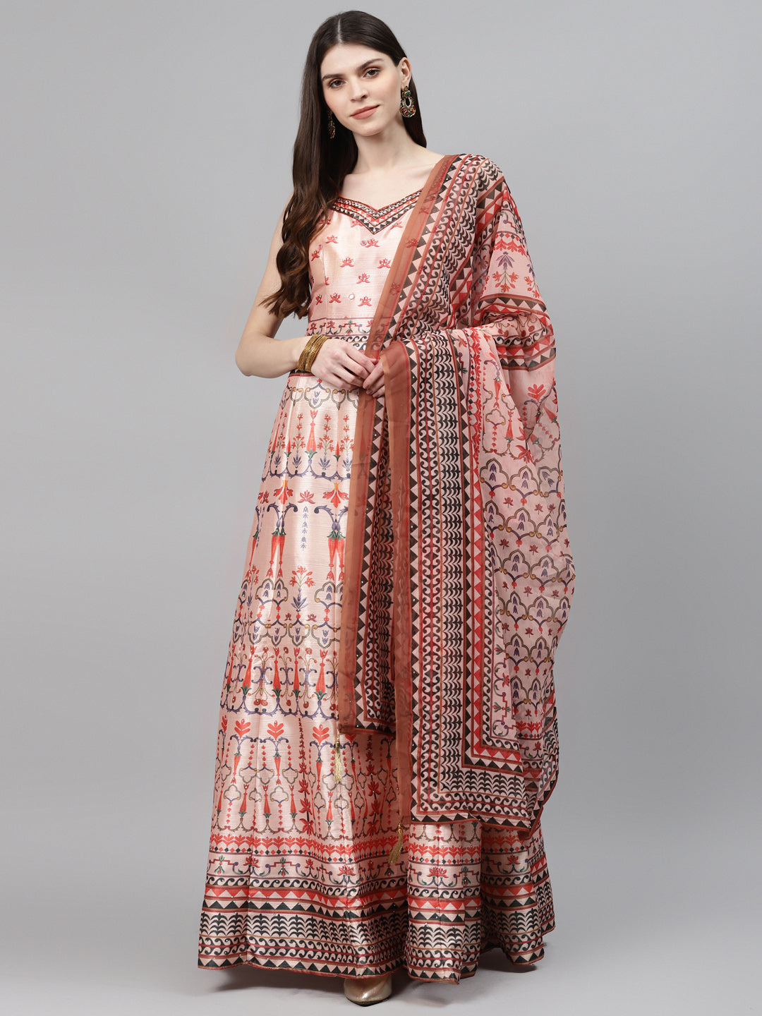 Made to Measure Anarkali Cocktail Gown with Bohemian Print in summer floral pattern