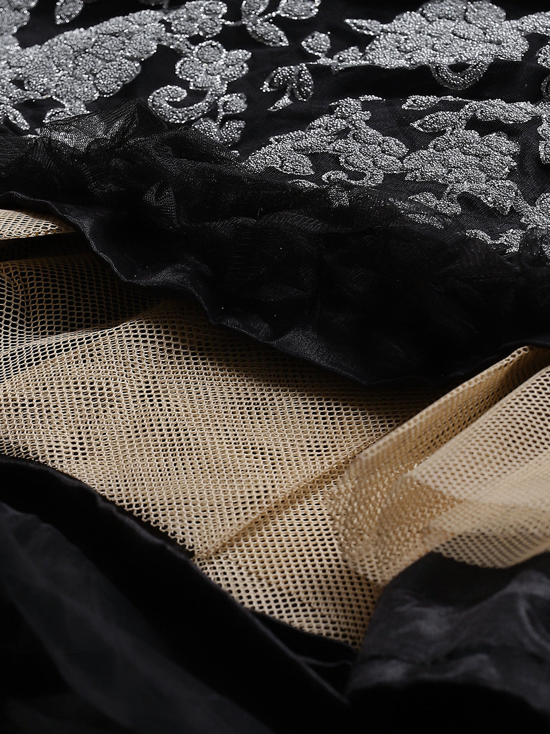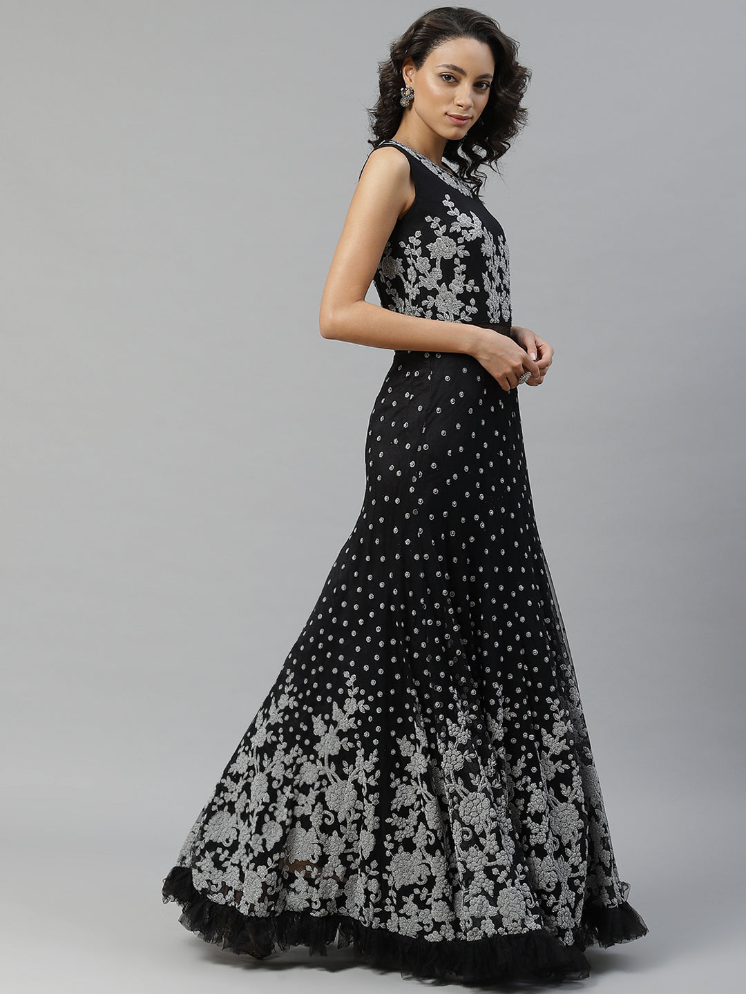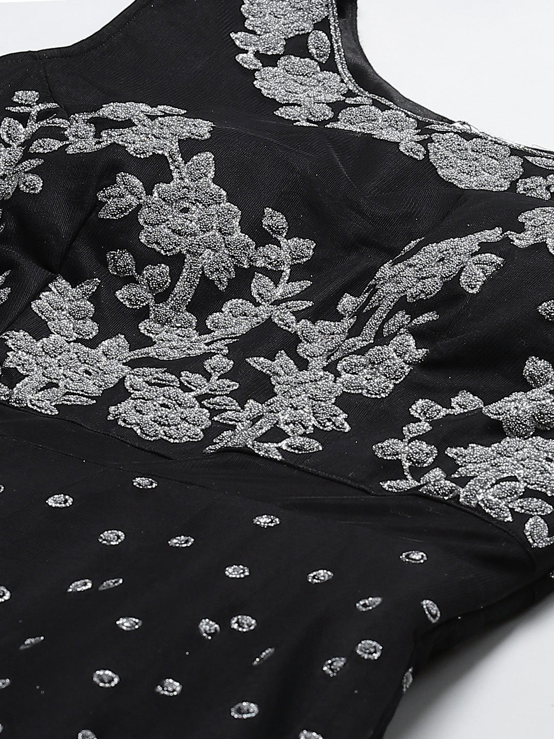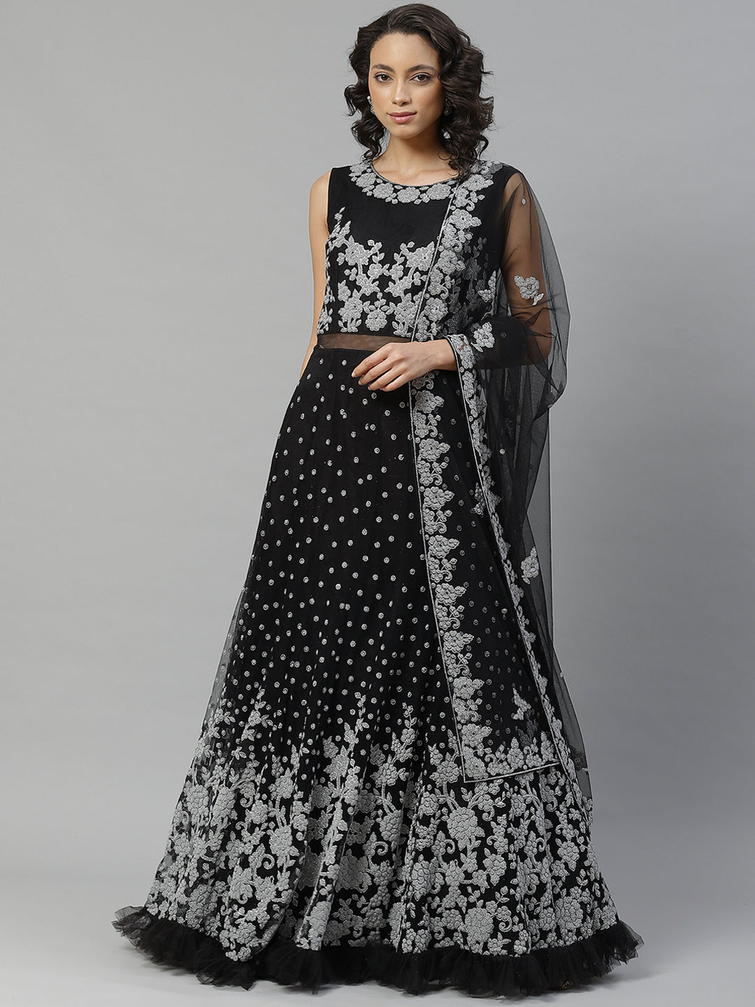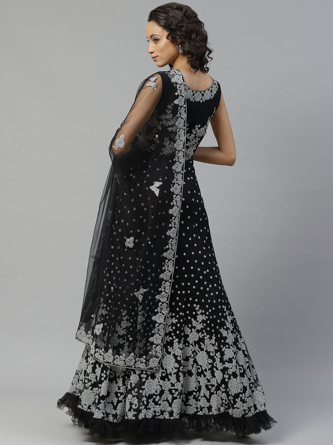 Made to Measure Silver Beads and Sparkle Embroidered Black Gown with Heavy Net Dupatta
