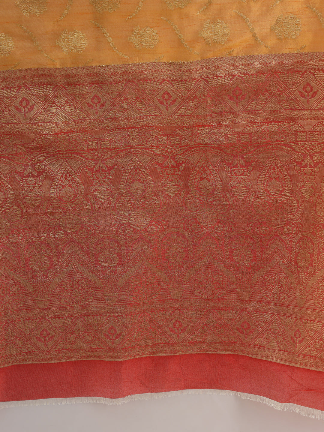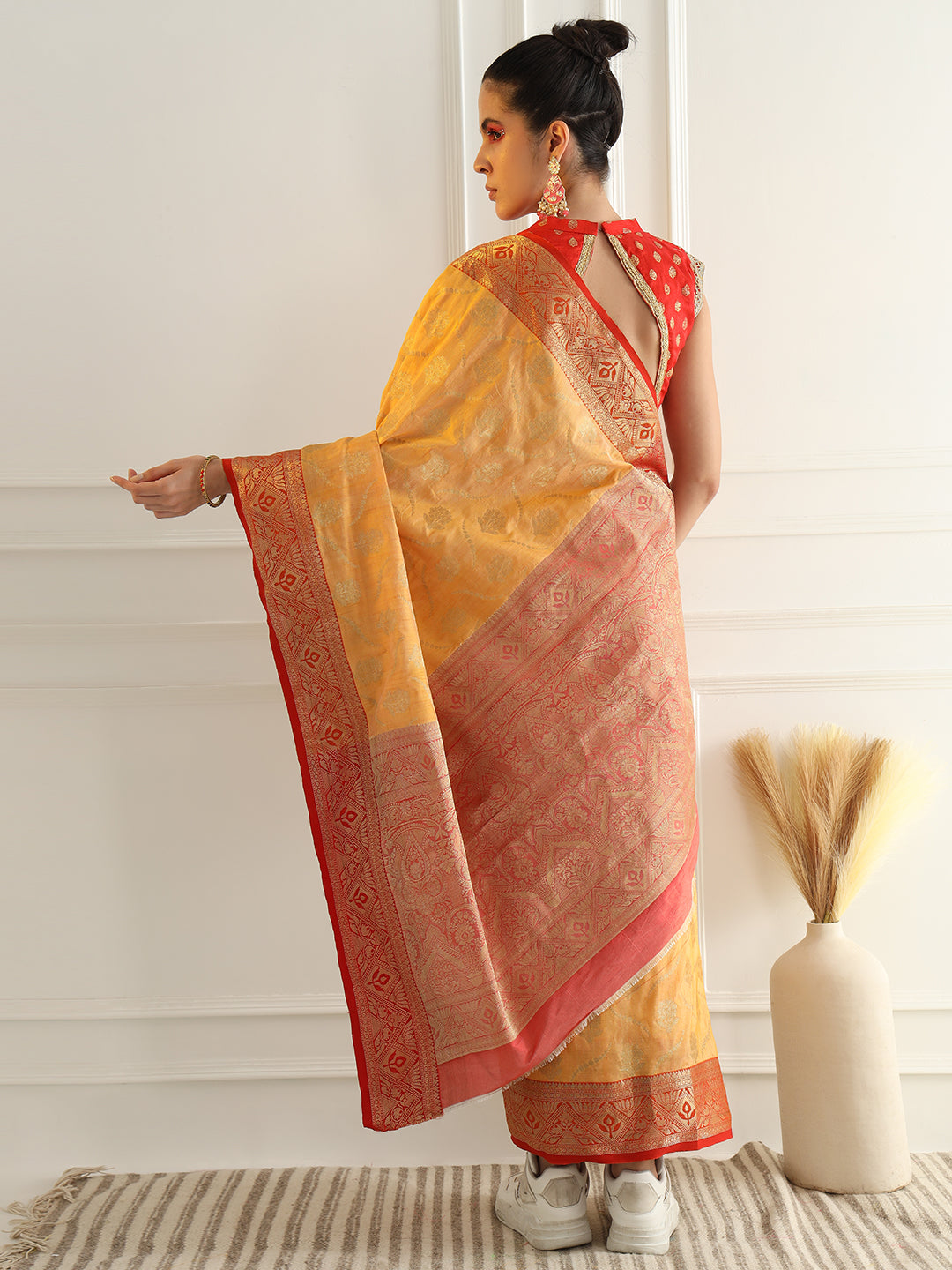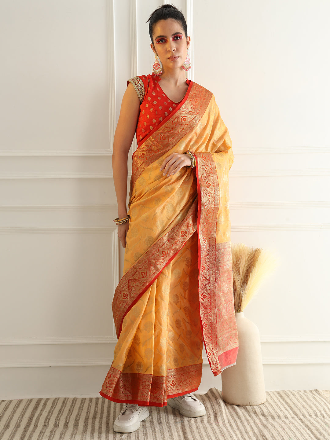 Floral Banarasi Silk Saree with Zari woven pattern Contrast Border