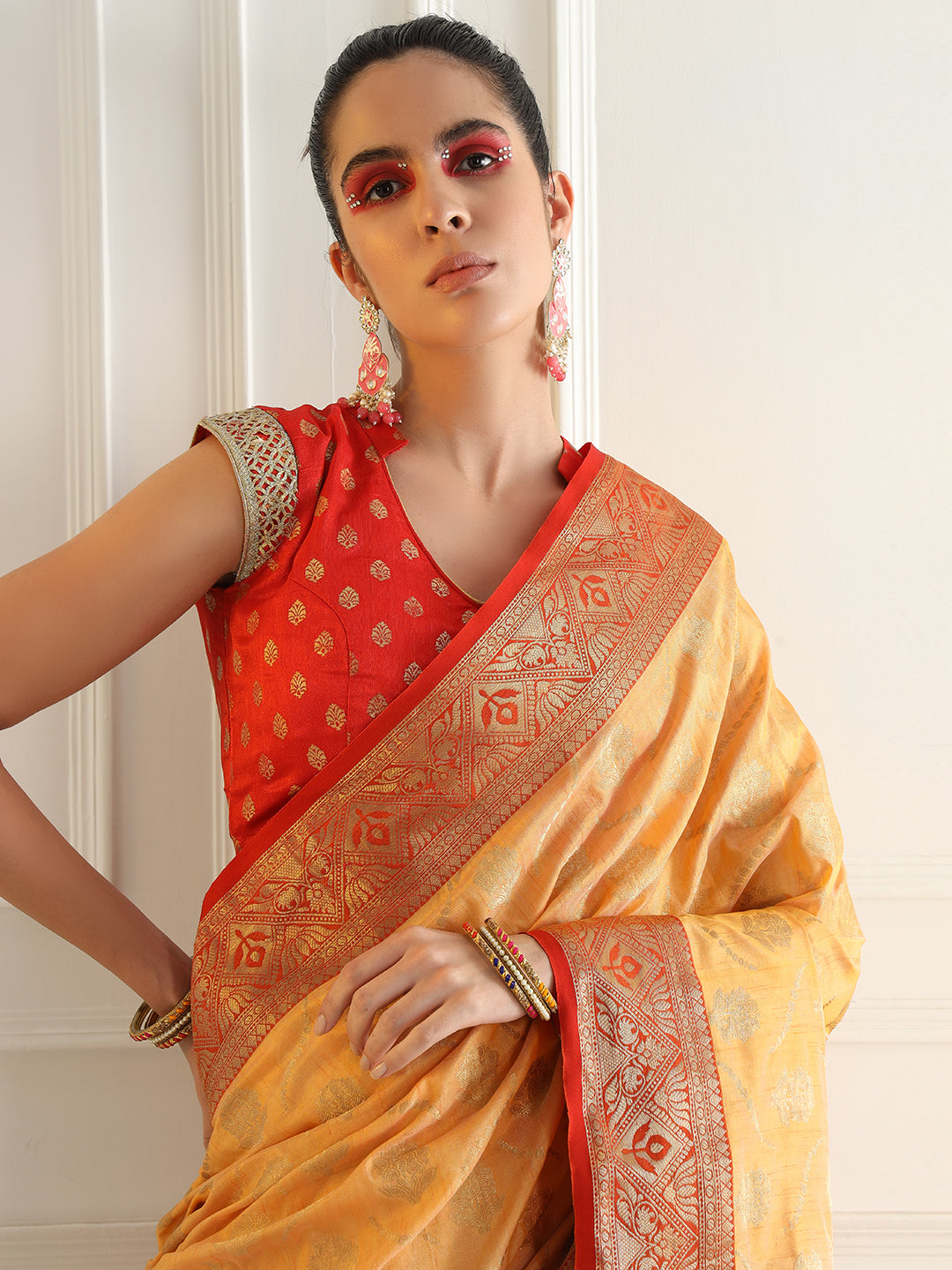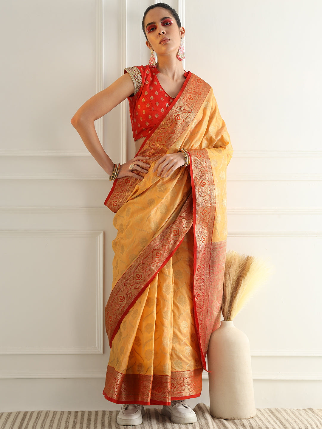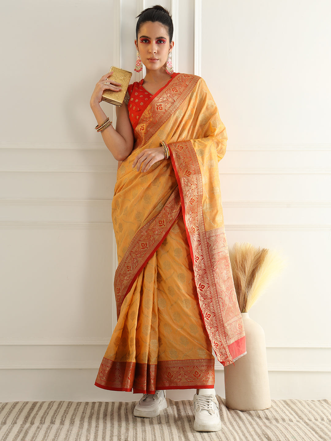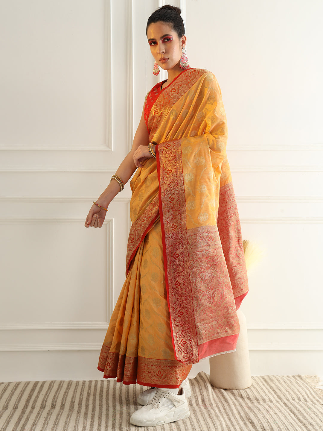 Floral Banarasi Silk Saree with Zari woven pattern Contrast Border