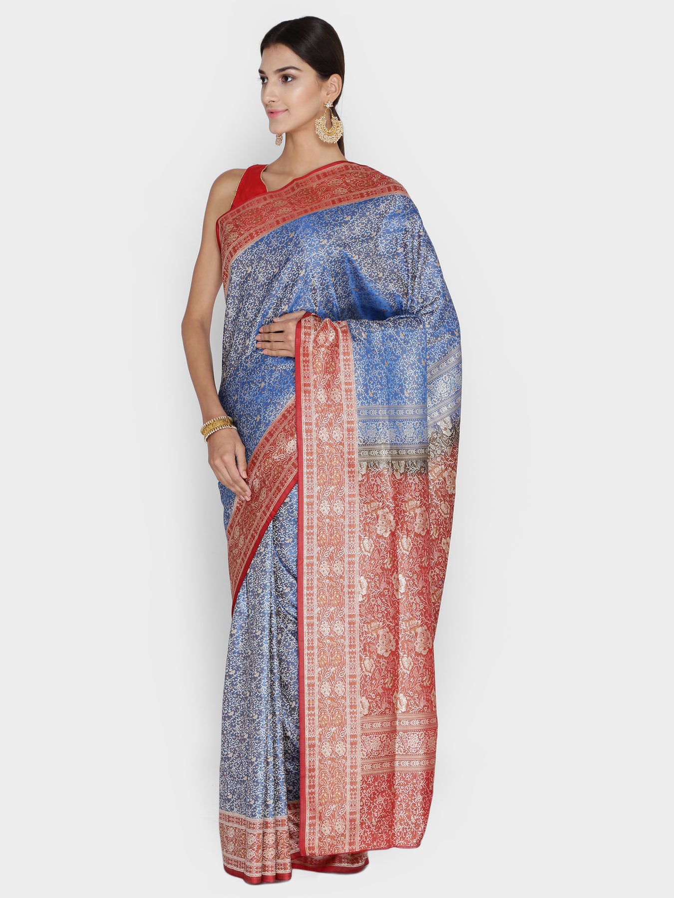 Blue & Maroon Colored Banarasi Silk Woven Zari Work Party Wear Saree