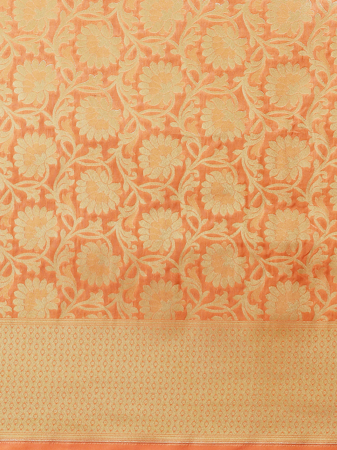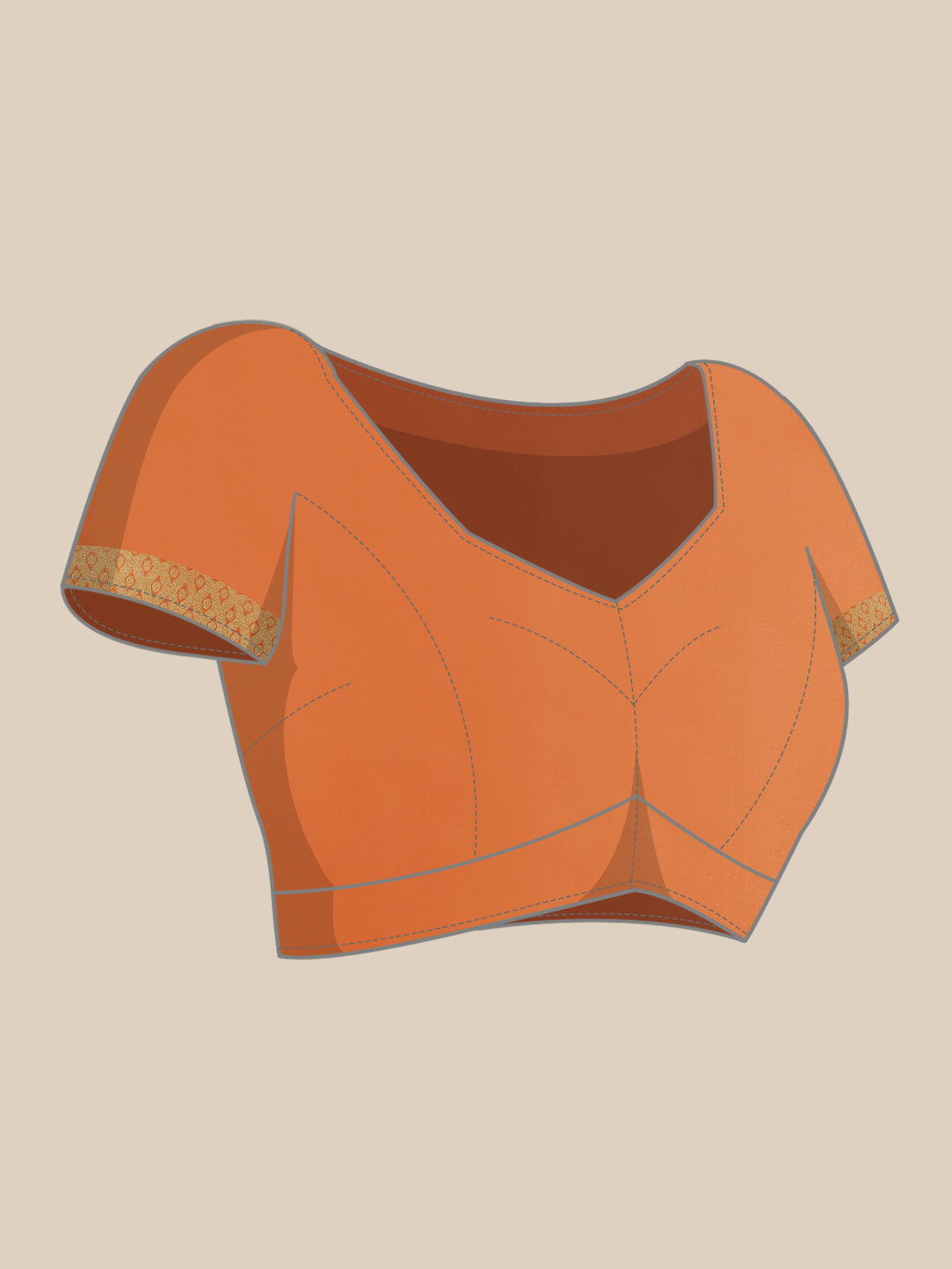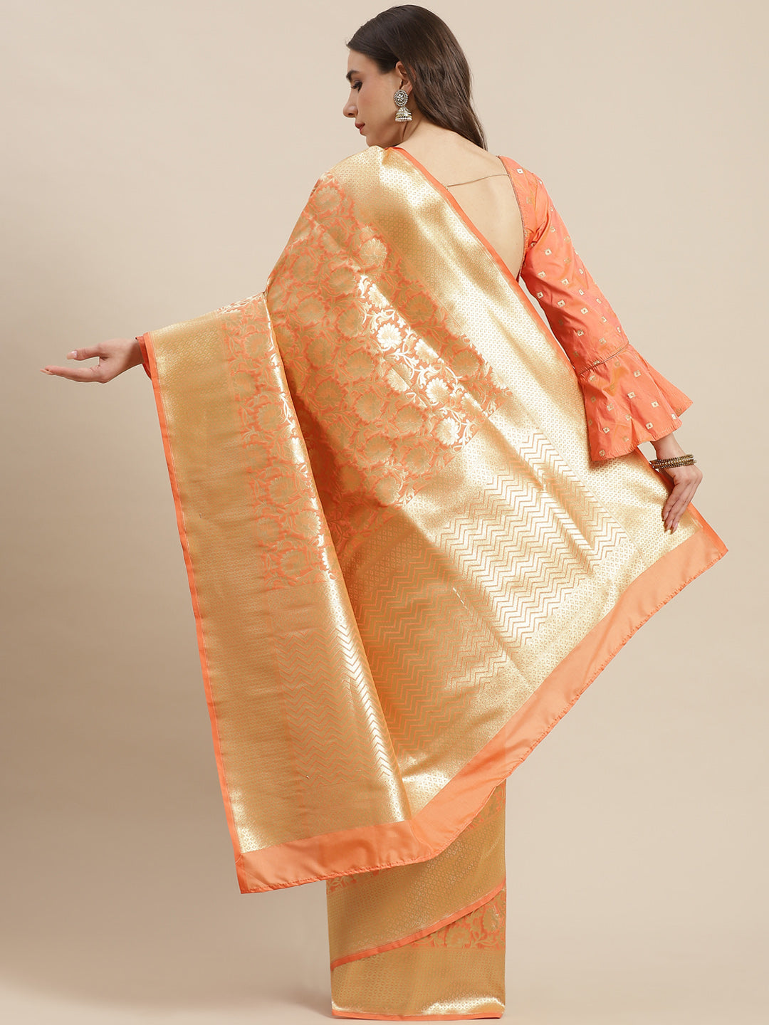 Chhabra 555 Orange Kanjeevaram Wedding Silk Saree Embellished &Traditional Gold Zari Floral Motifs