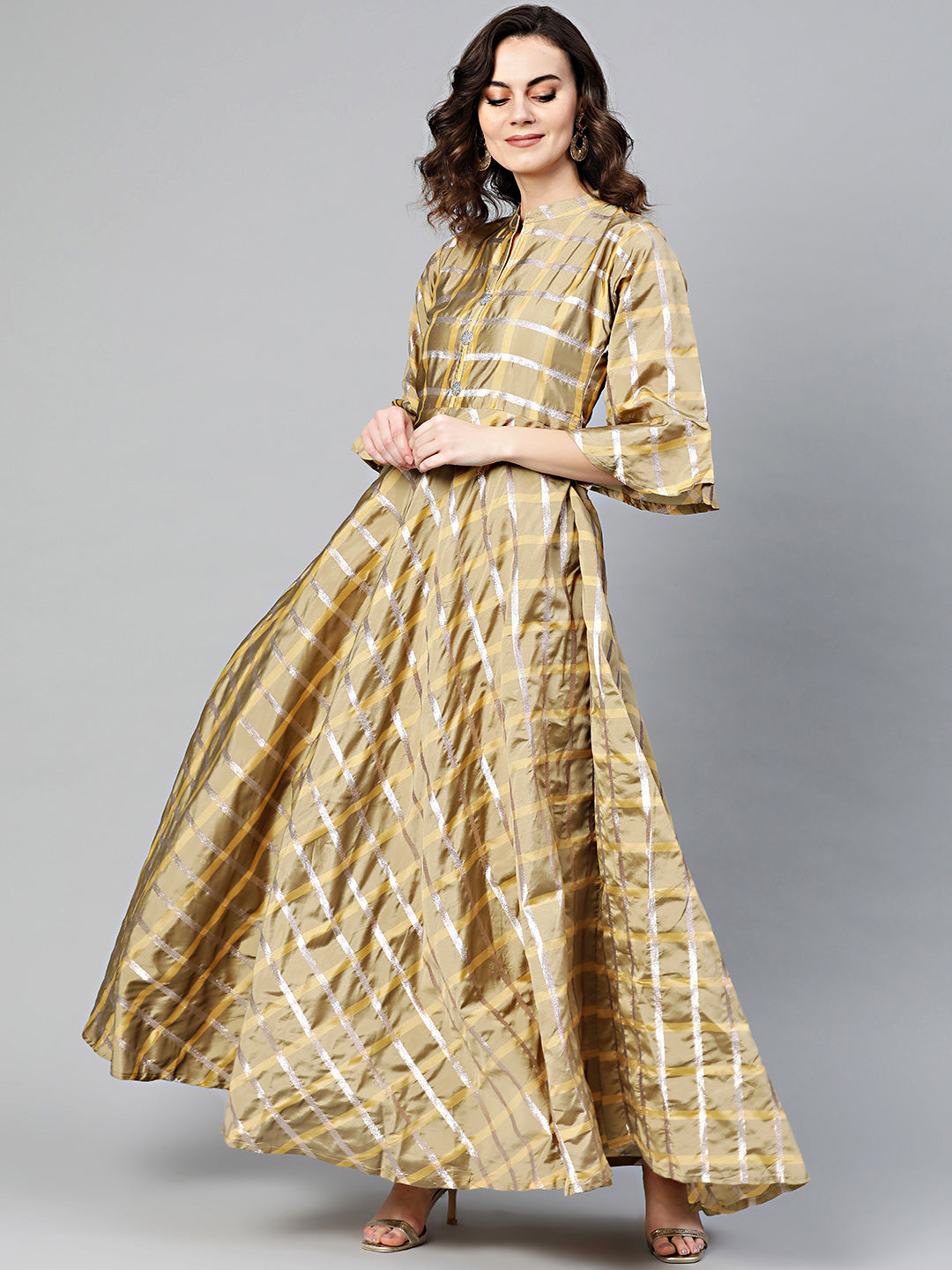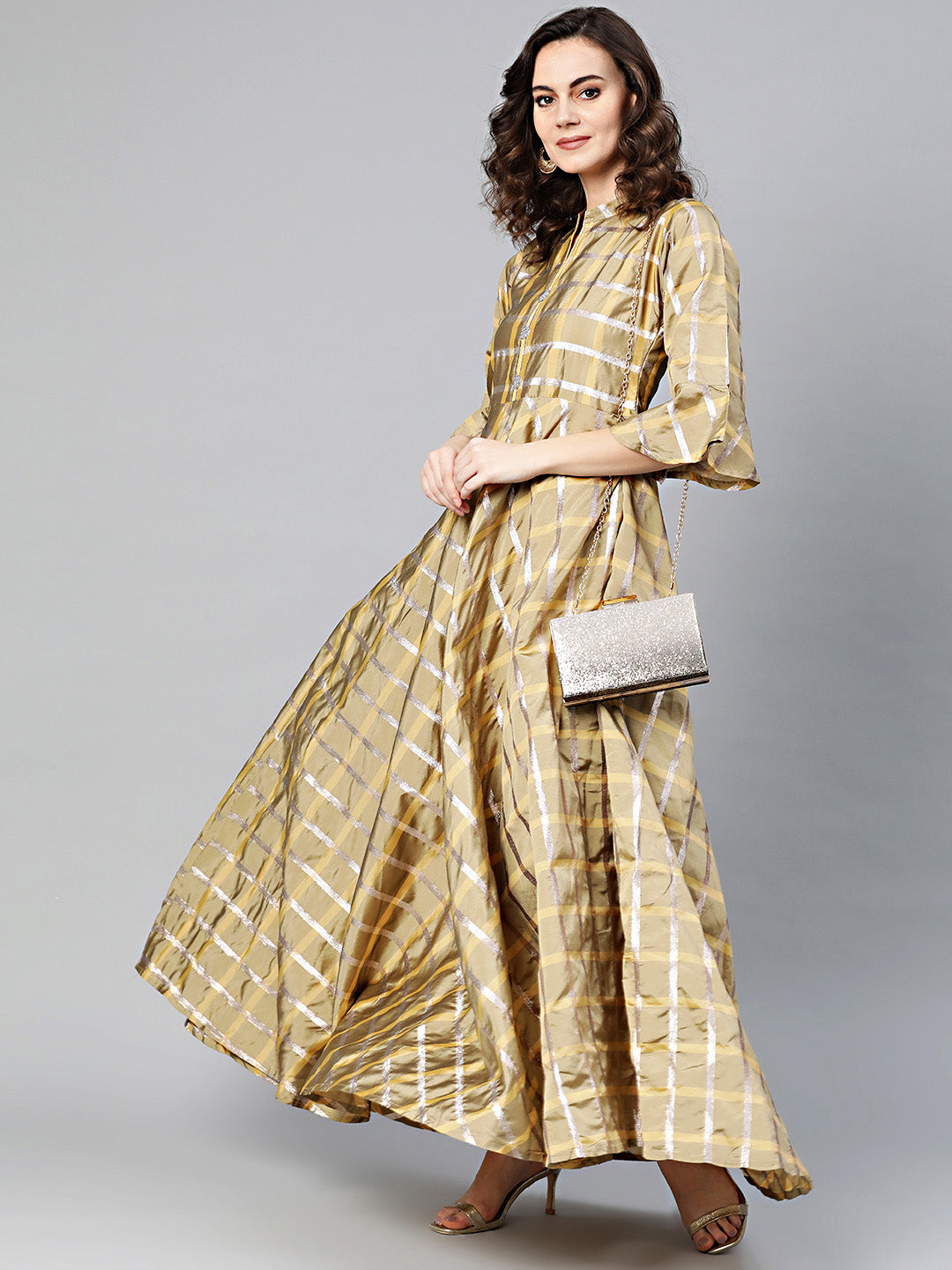 Anarkali Dress with Gota Checked Weaving and Bell Sleeves