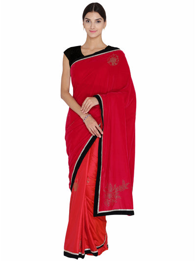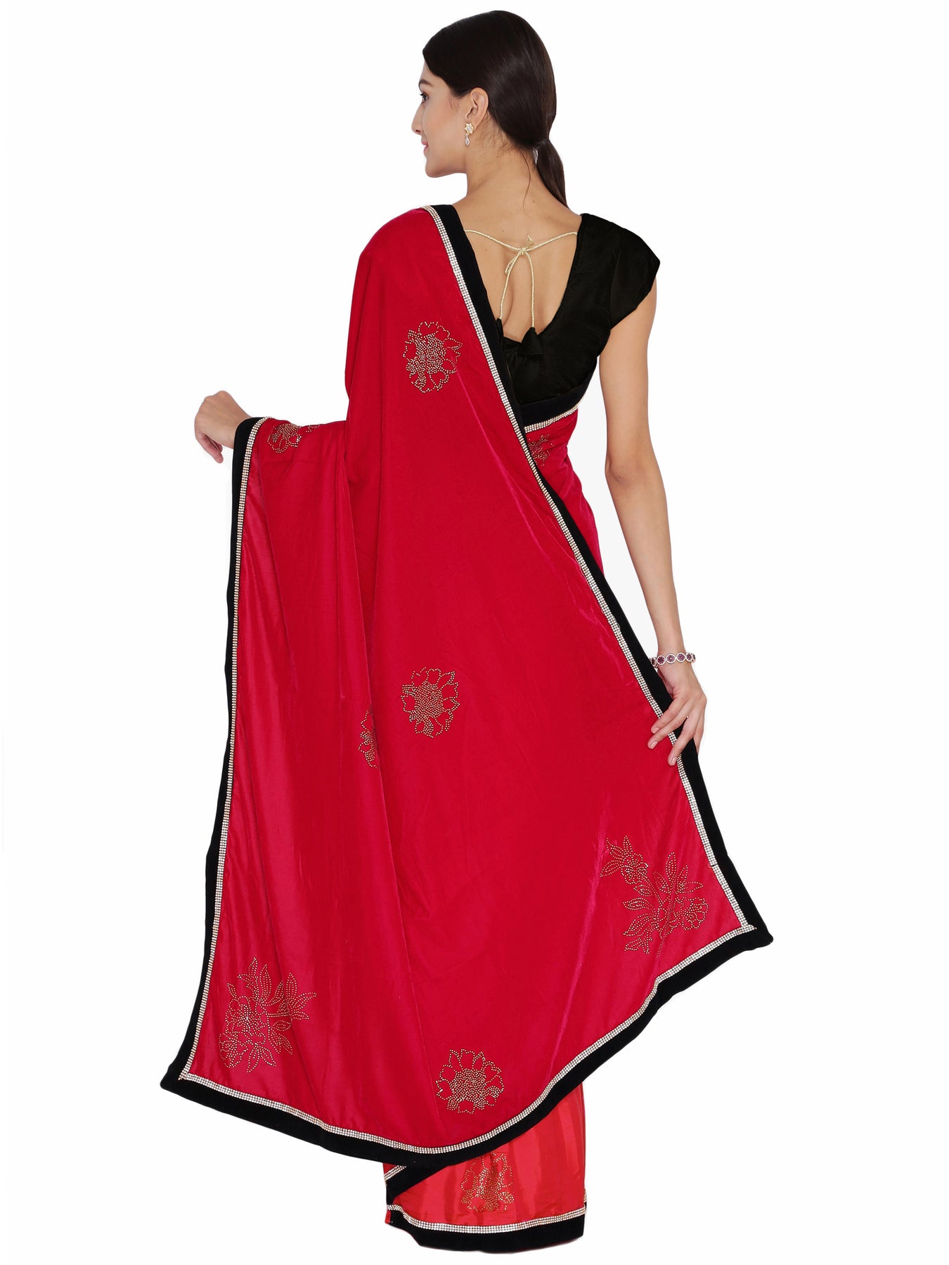Crystal Embellished Micro Velvet Saree with Contrast Border