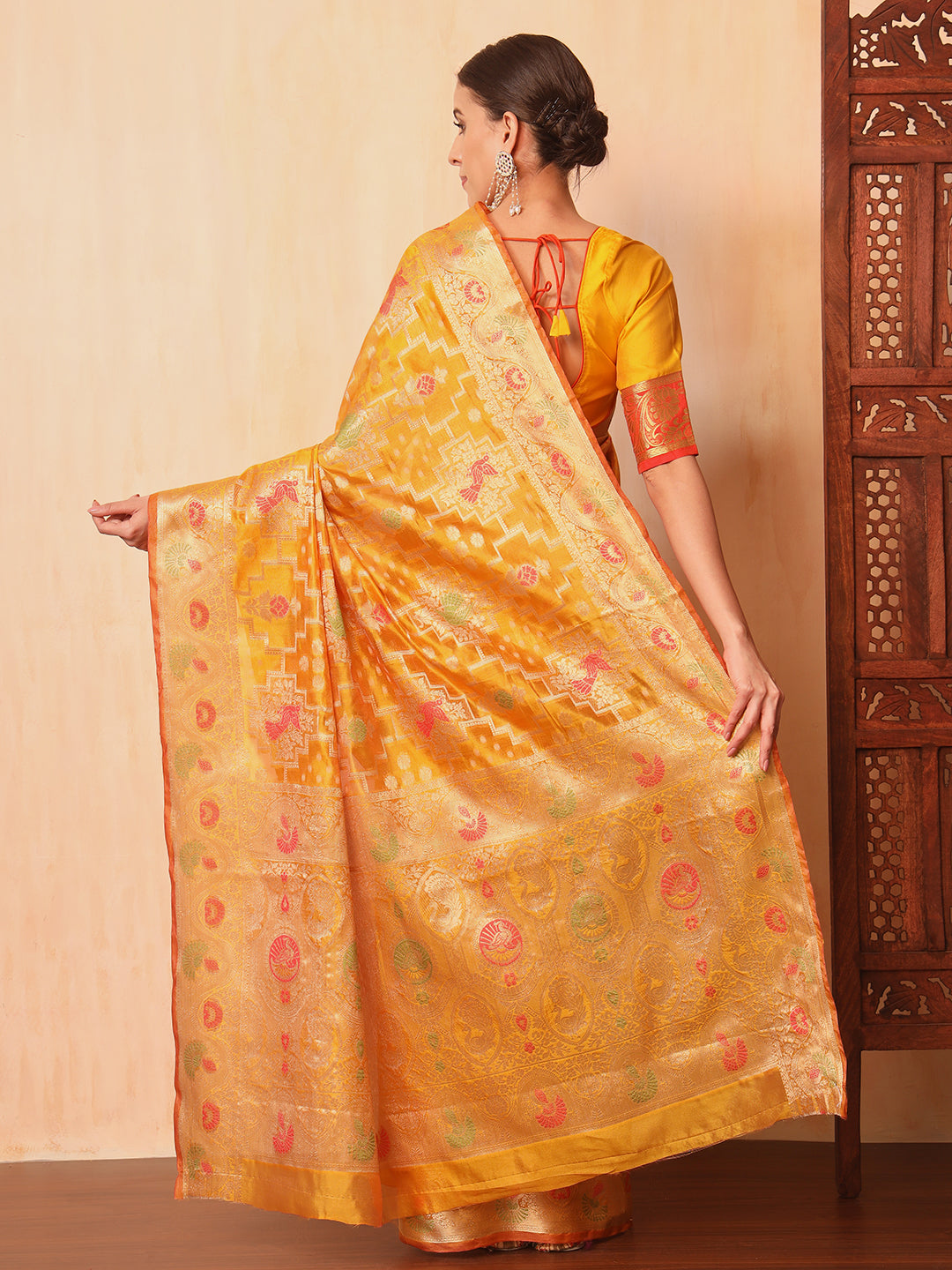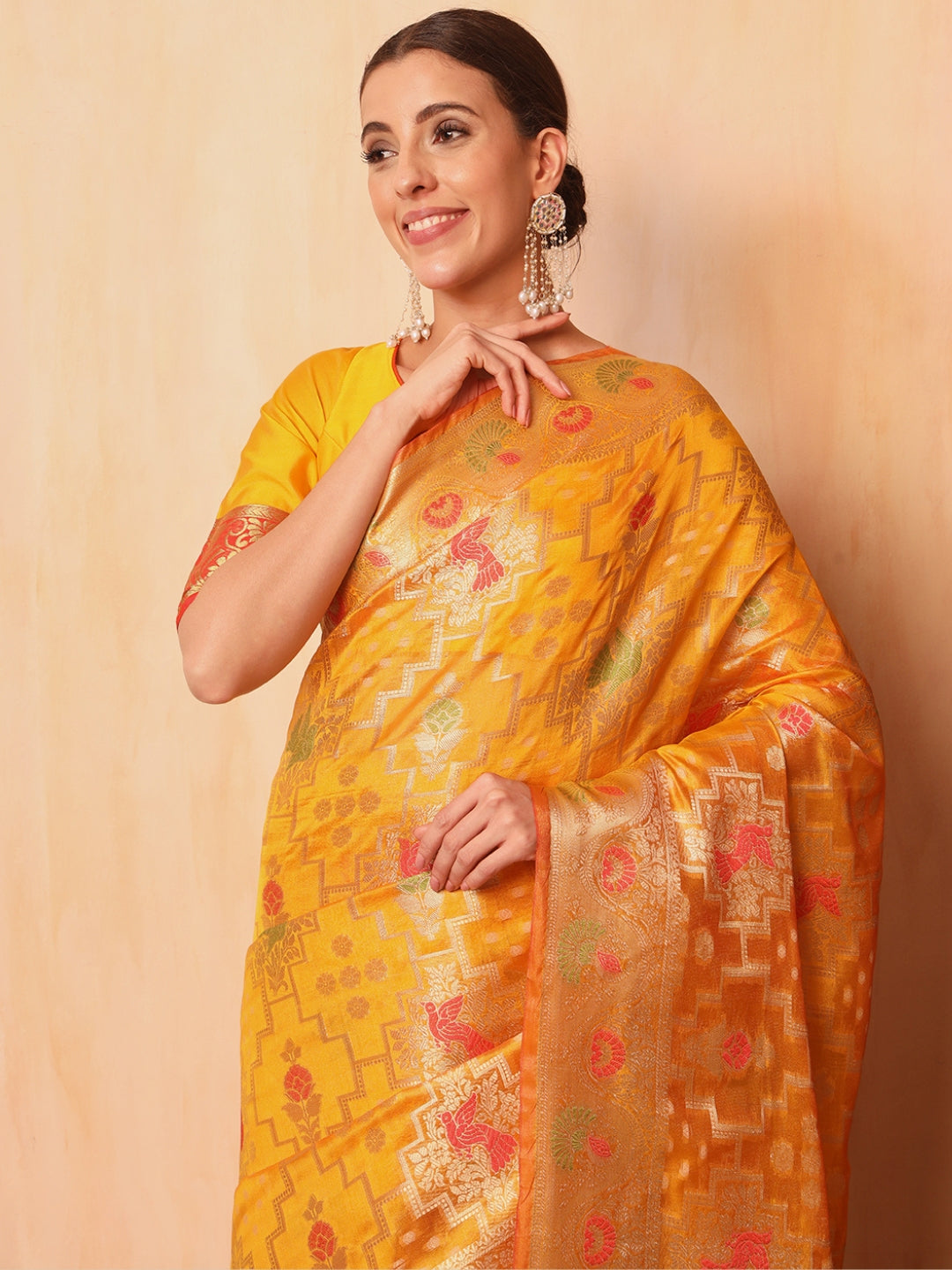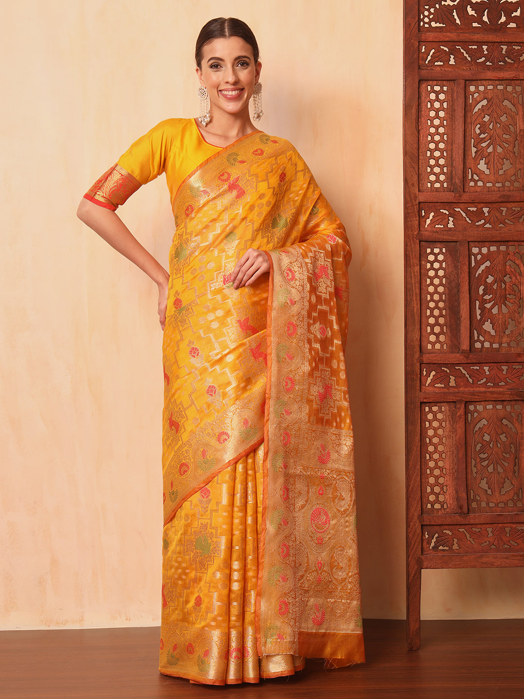 Mustard Resham Meenakari Traditional Chanderi Silk Saree