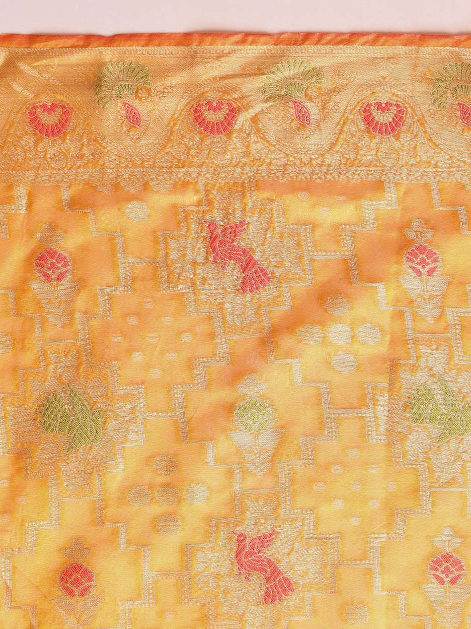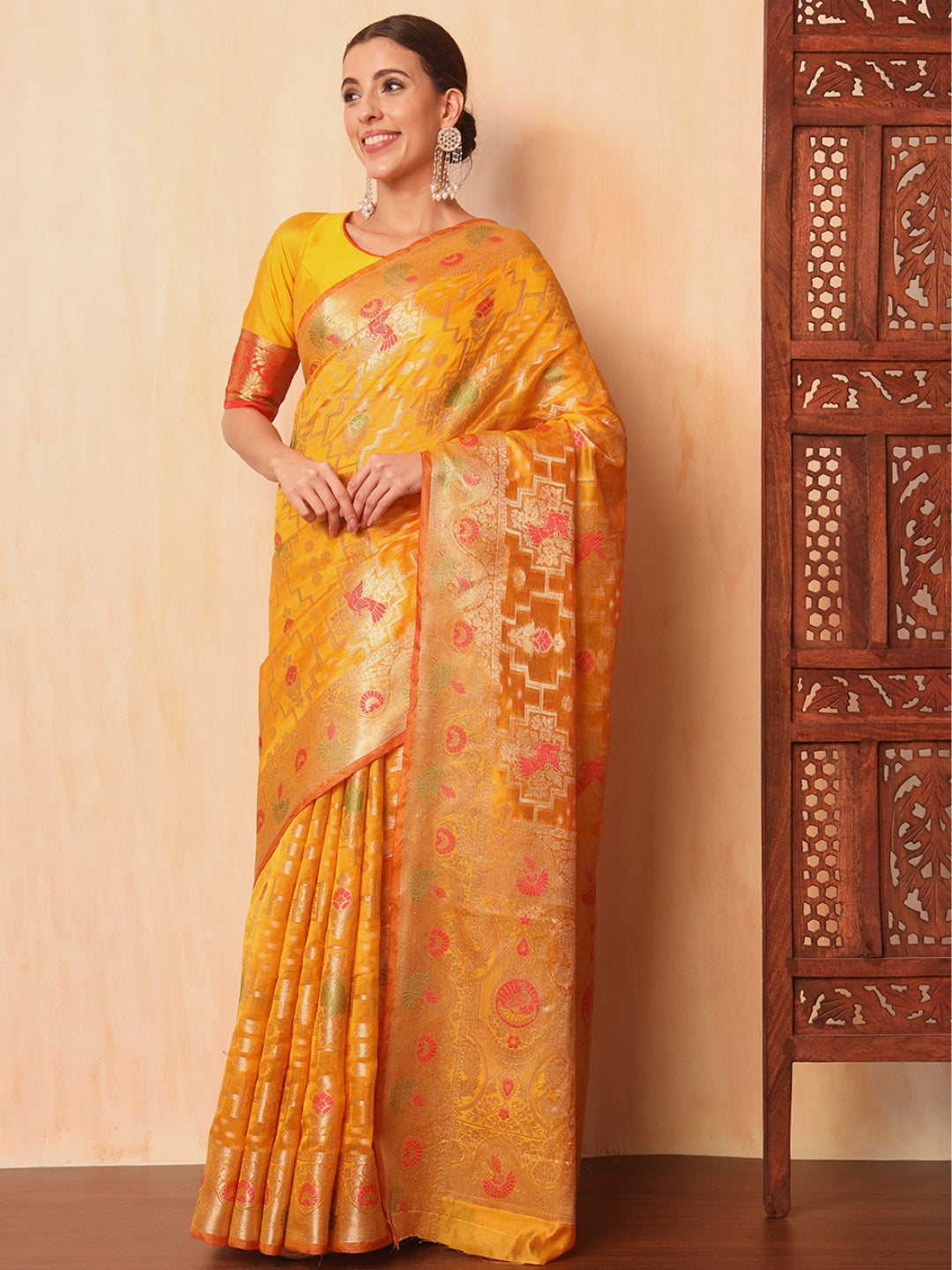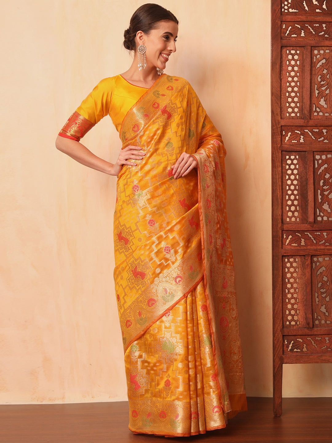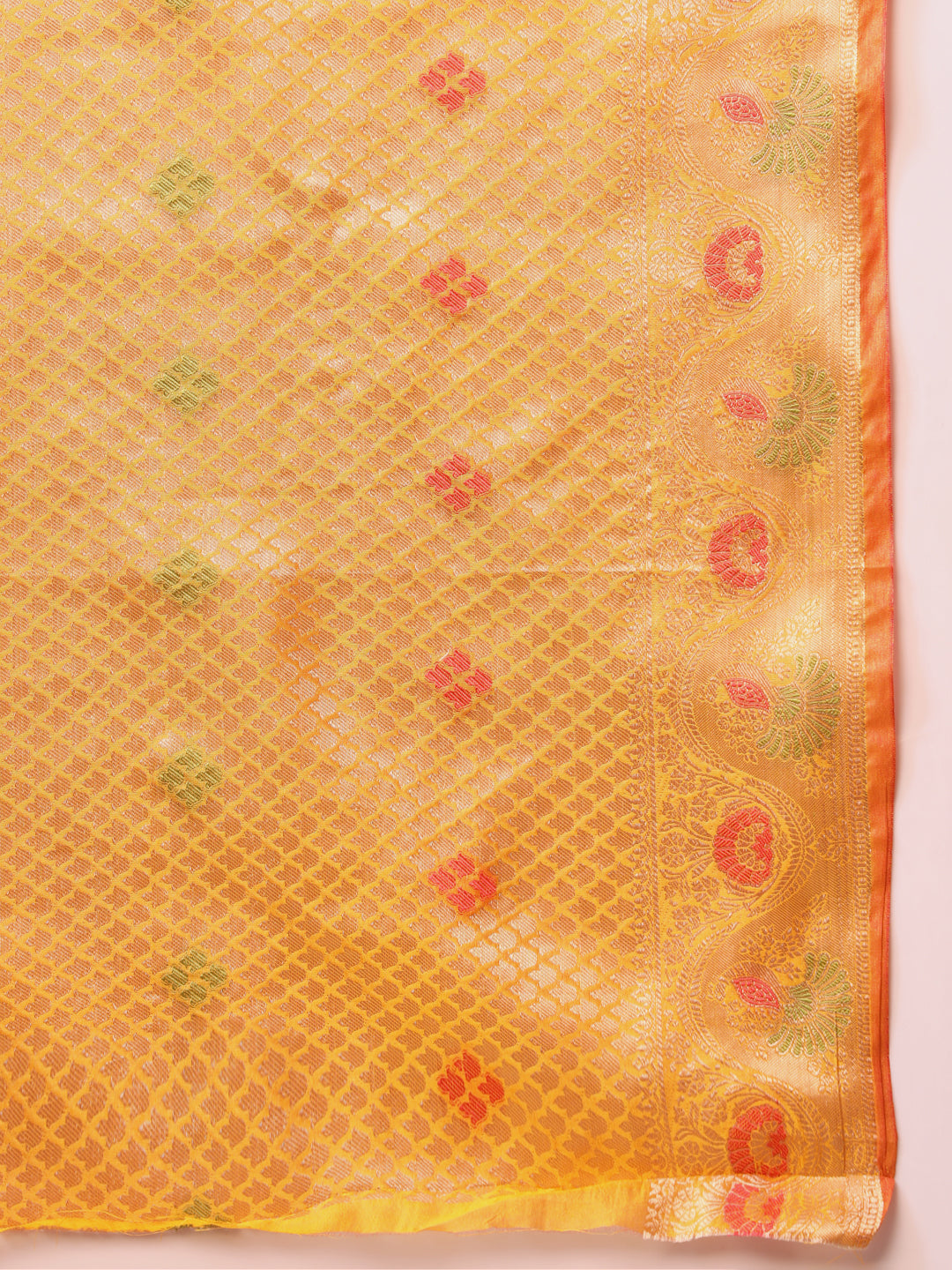 Mustard Resham Meenakari Traditional Chanderi Silk Saree