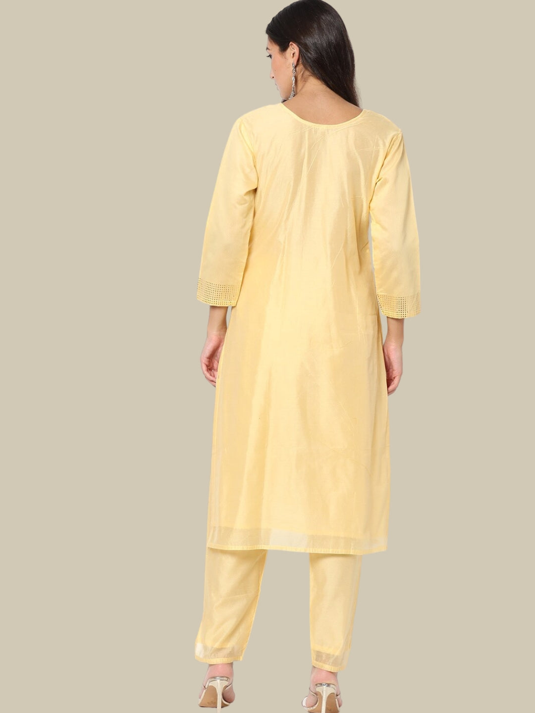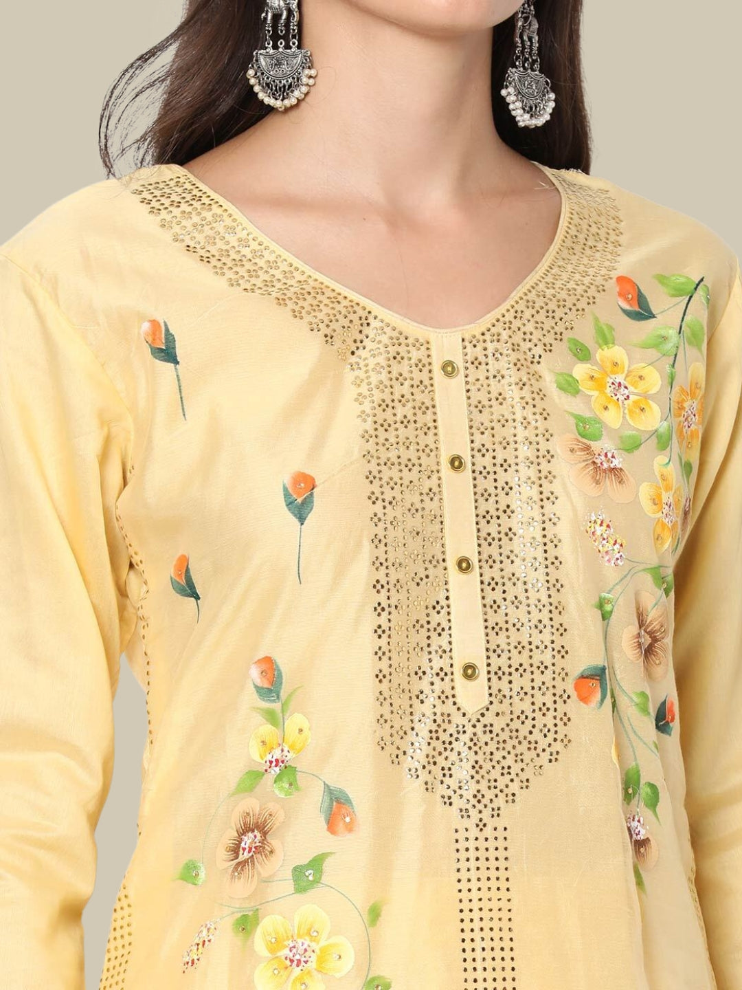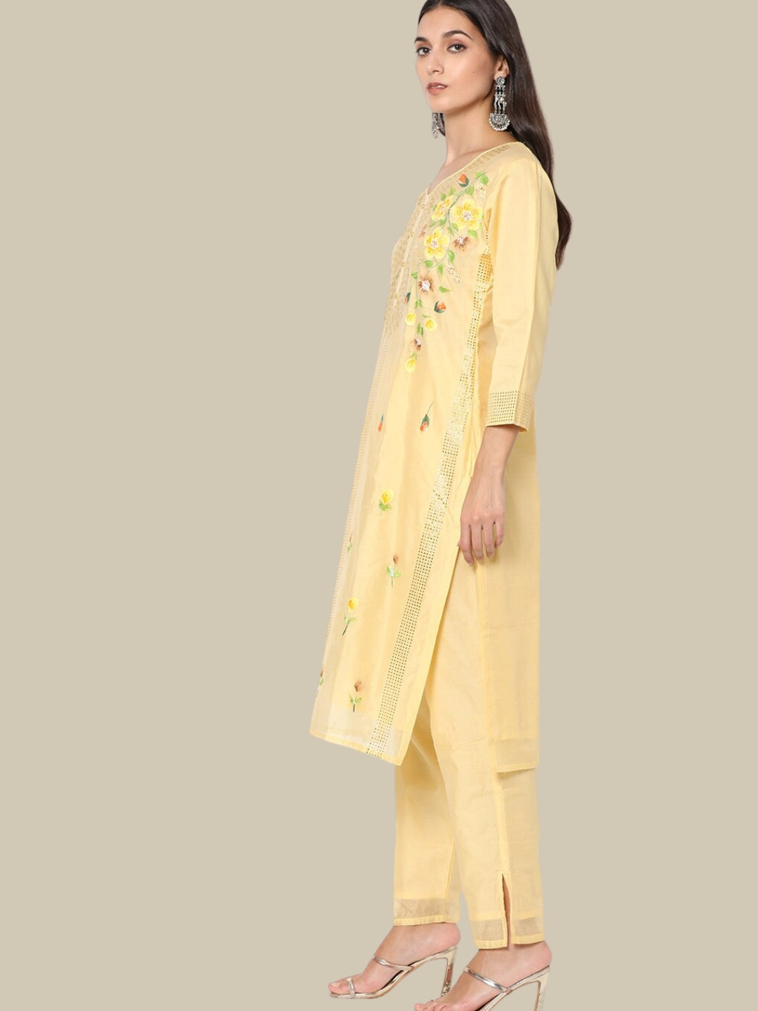 Chhabra 555 Made to Measure Pastel Crystal Embelished Floral Printed Chanderi Cotton Kurta Set
