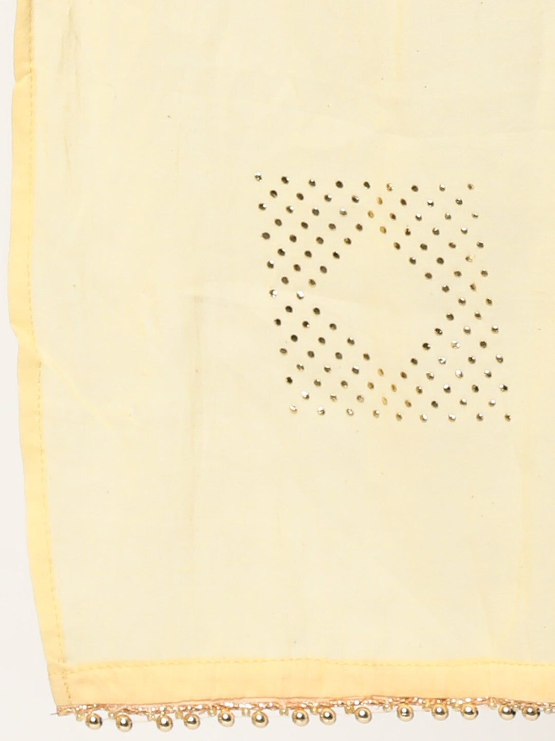 Pastel Crystal Embelished Floral Printed Chanderi Cotton Kurta Set