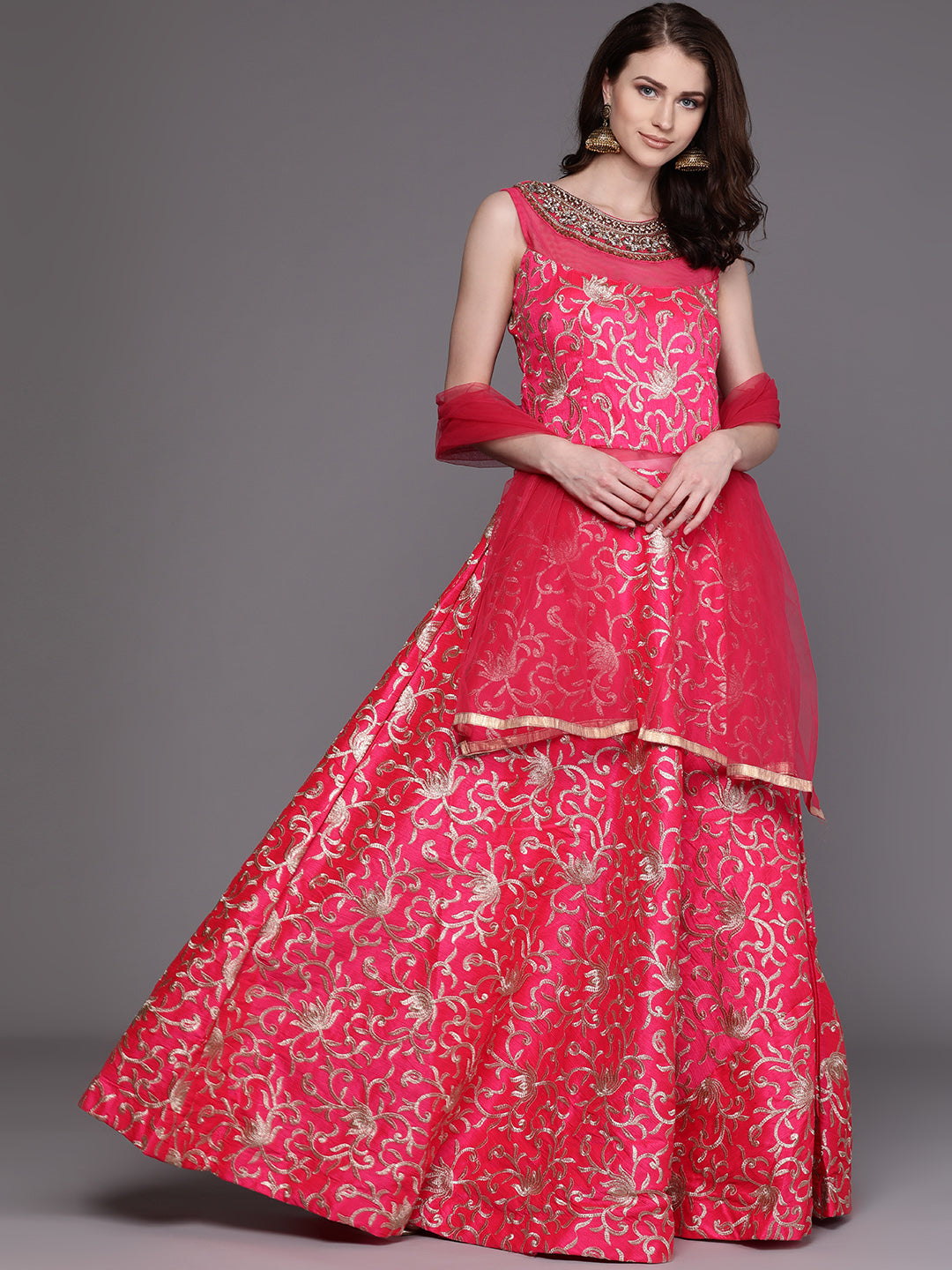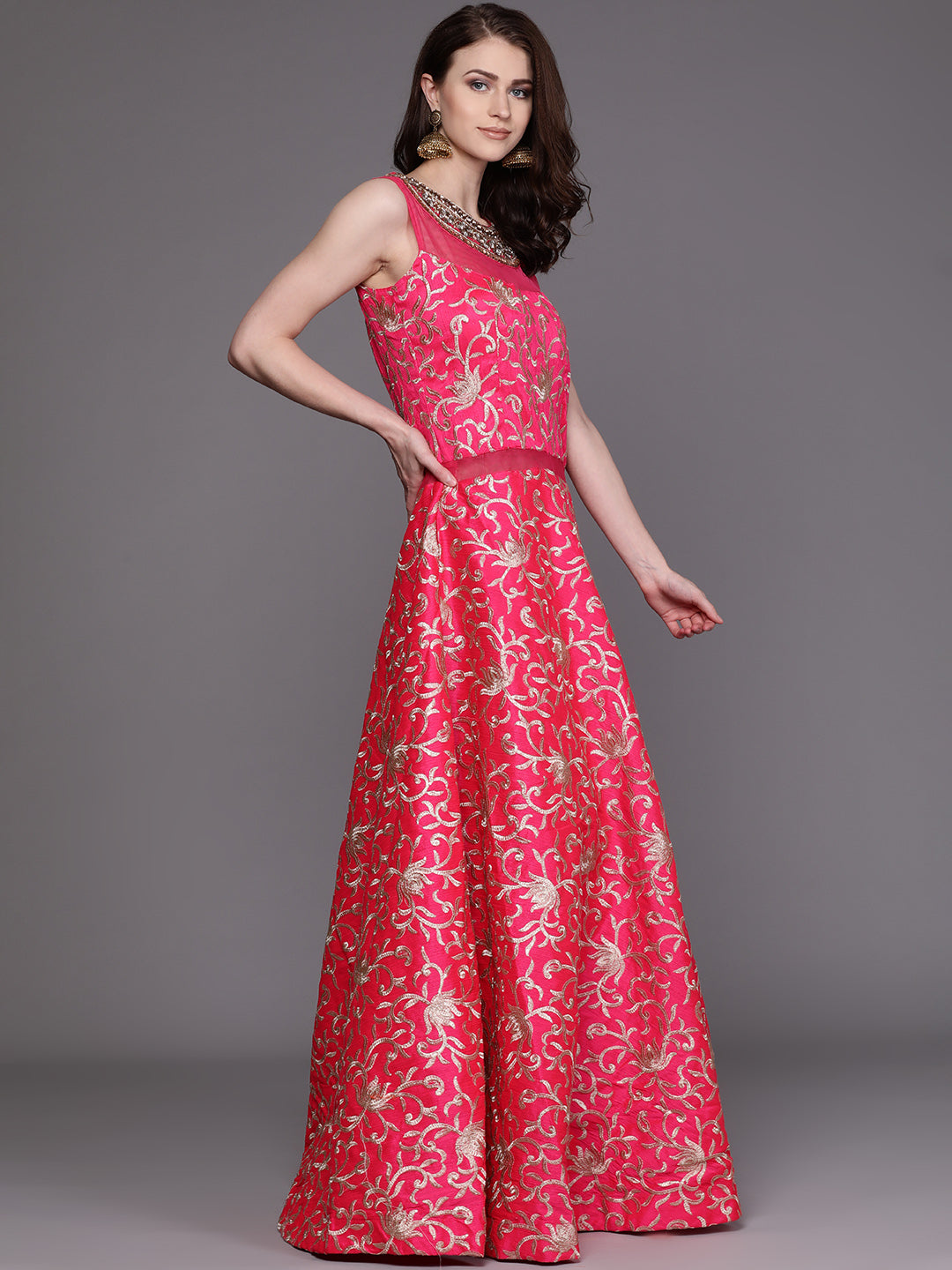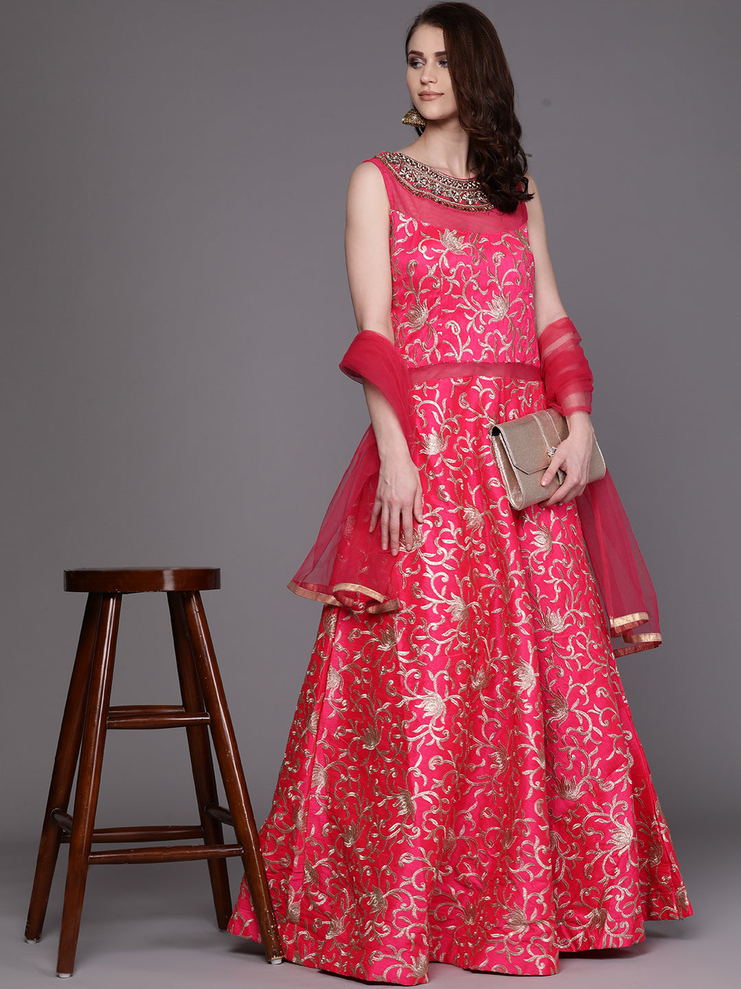 Made to Measure Anarkali Cocktail Gown with Embellished Neckline and Kasab Embroidery