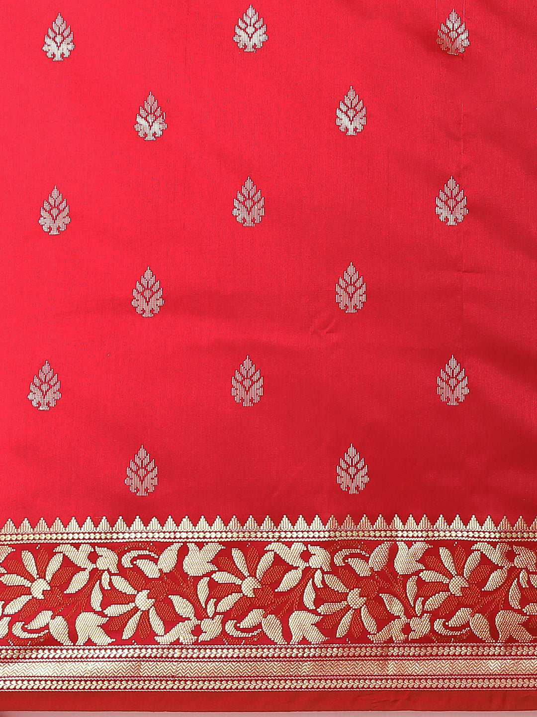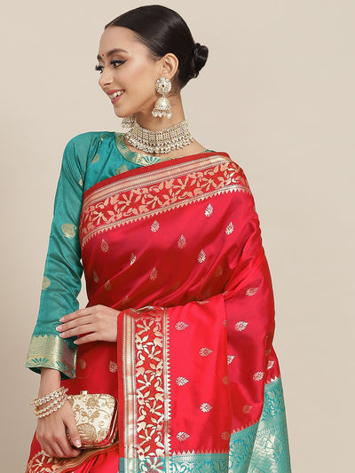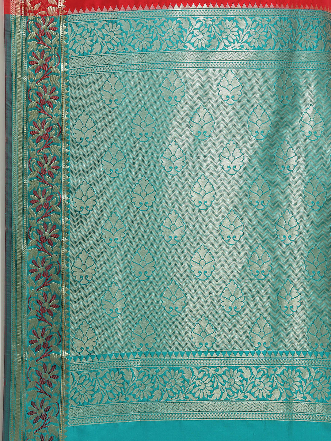 Floral Ethnic Motifs Banarasi Silk Saree with Contrast Pallu