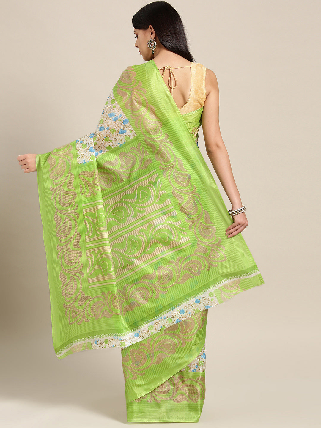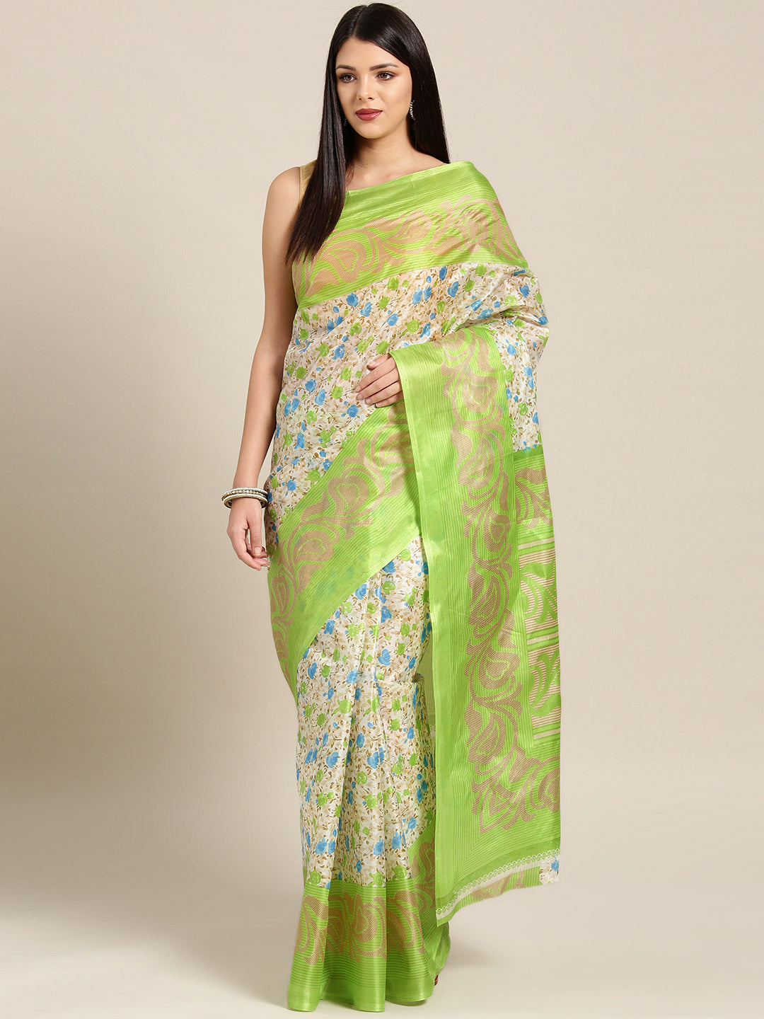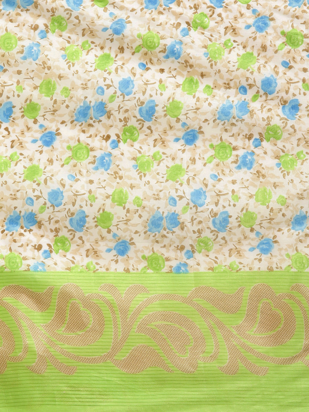 Printed Bhagalpuri Saree with Multicolor Floral and Paisley Motifs