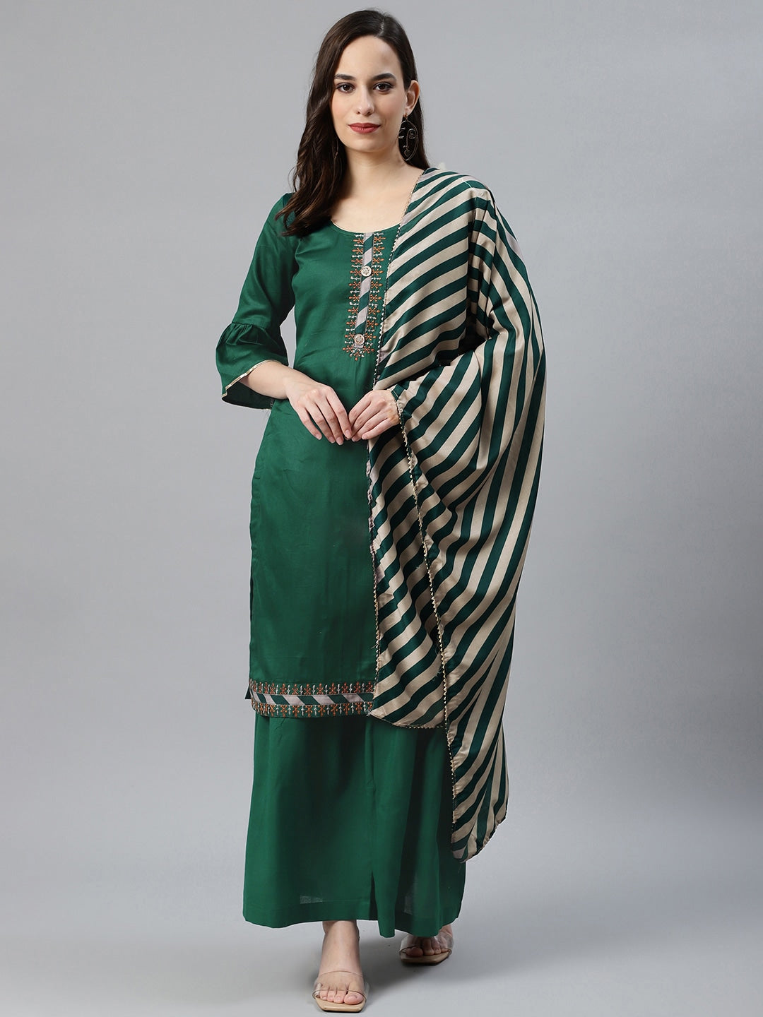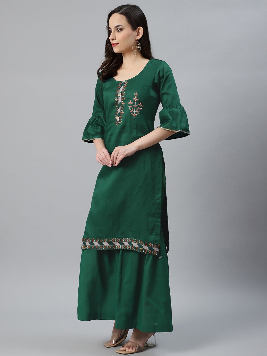 Cotton Stitched Kurta Sharara Set With Printed Gotta Pati Dupatta & Bell Sleeves