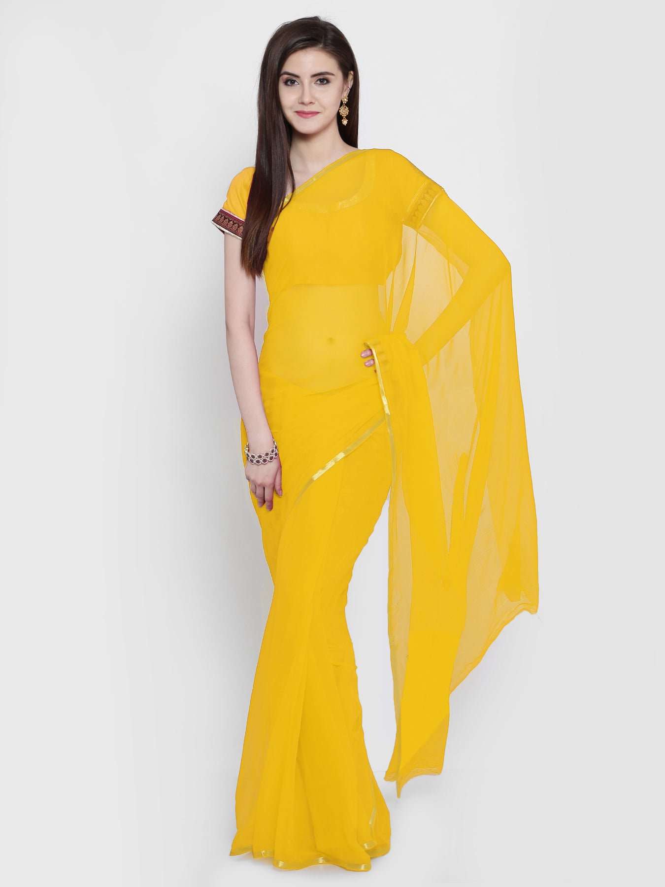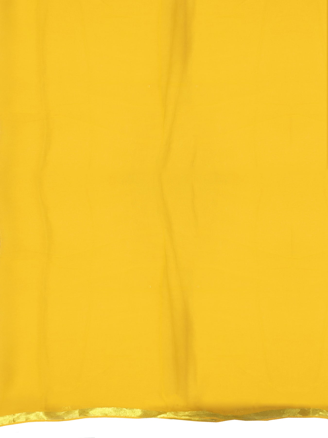 Yellow Chiffon "Binny" Style Saree with Zari Border and Brocade Blouse